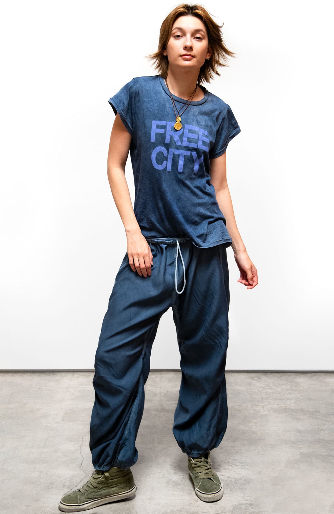 - Hand-sewn, washed, dyed, and hand-screen printed locally in Los Angeles, CA. 100% custom. 100% FREECITY!